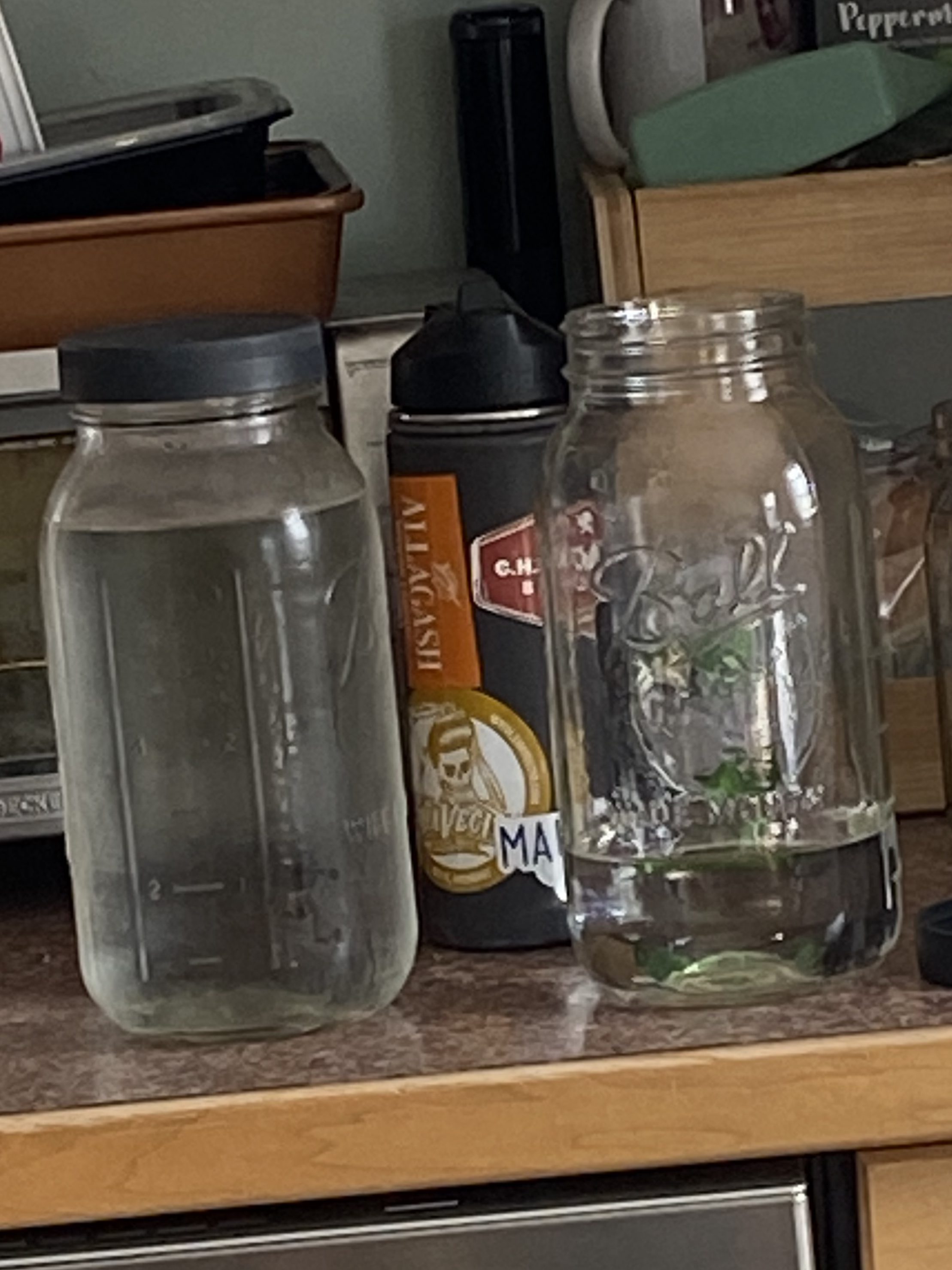 We collected sap from our tree each day. We stored it in 1/2 gallon mason jars in our fridge. You have to treat sap like milk, it needs to be kept cold and used within the week. If there is snow on the ground, you can pack snow around your storage (and then we would have switched to a food grade 5 gallon bucket as we wouldn’t leave glass mason jars outside in freezing temperatures.