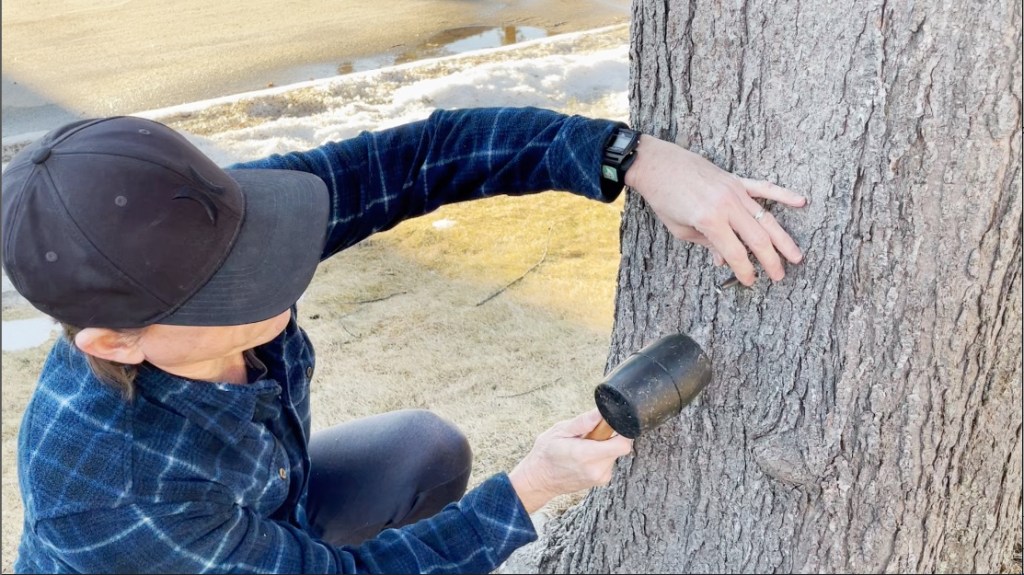 Now, we aren’t trying to eat only off our land, but, we do live in the Northeast and have a maple tree in our front yard. It isn’t a sugar maple, but it’s a maple, and that means we can harvest its sap and boil it down for syrup.