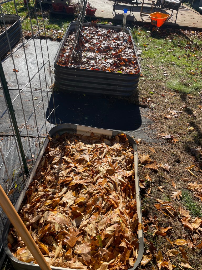 Once you have the cloves in the soil it is time to mulch. Last year we used pine needles on both of our beds (soft and hardneck), and this year we are using leaves. Your layer of mulch should be anywhere from 2-6 inches, to protect your cloves from animals before the ground freezes and then to preserve moisture and help with weed pressure once the ground starts thawing. We go a bit heavier with leaf mulch due to the amount of wind we have here. When we did pine needles it stayed in place very well and we only used about 3-4 inches.