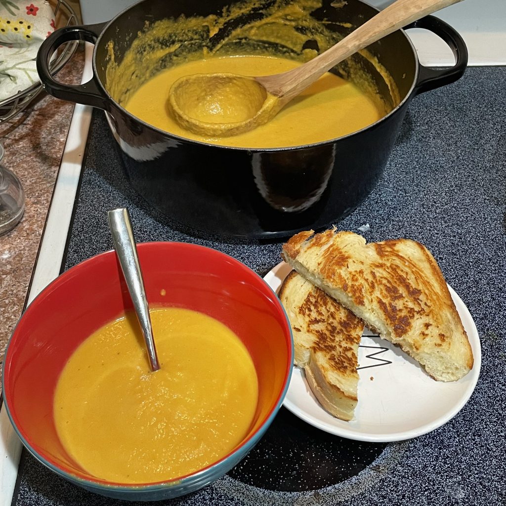 On a crisp fall or winter day I absolutely love a grilled cheese sandwich and a warm creamy cup of bisque. Unfortunately, I am the only one in our family who eats tomatoes so it doesn’t make sense to make a big batch of tomato bisque, but I crave that bisque and grilled cheese combo.