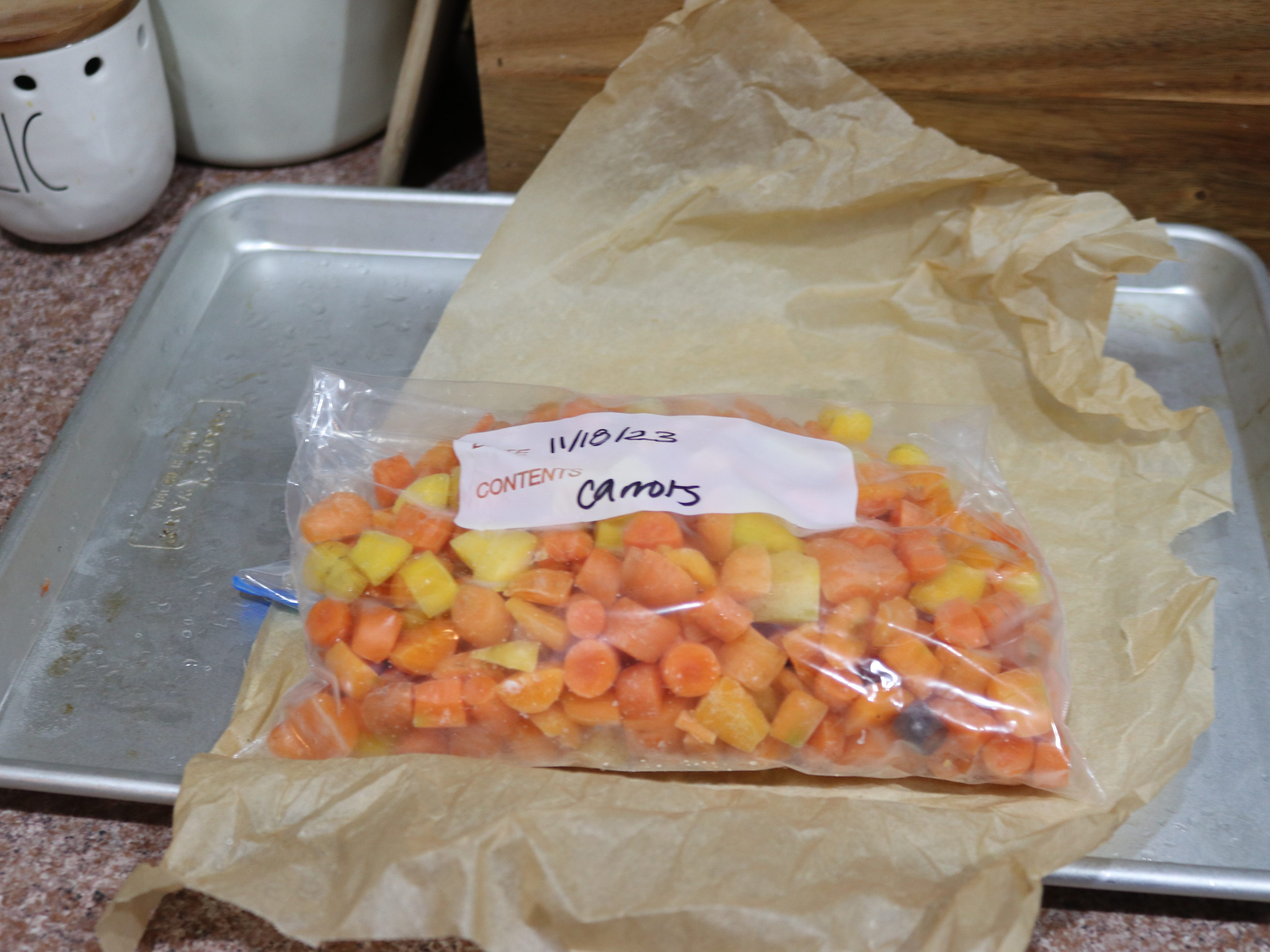 10. Label the bag and store in your freezer to use as needed until next year’s carrots can be used fresh.
