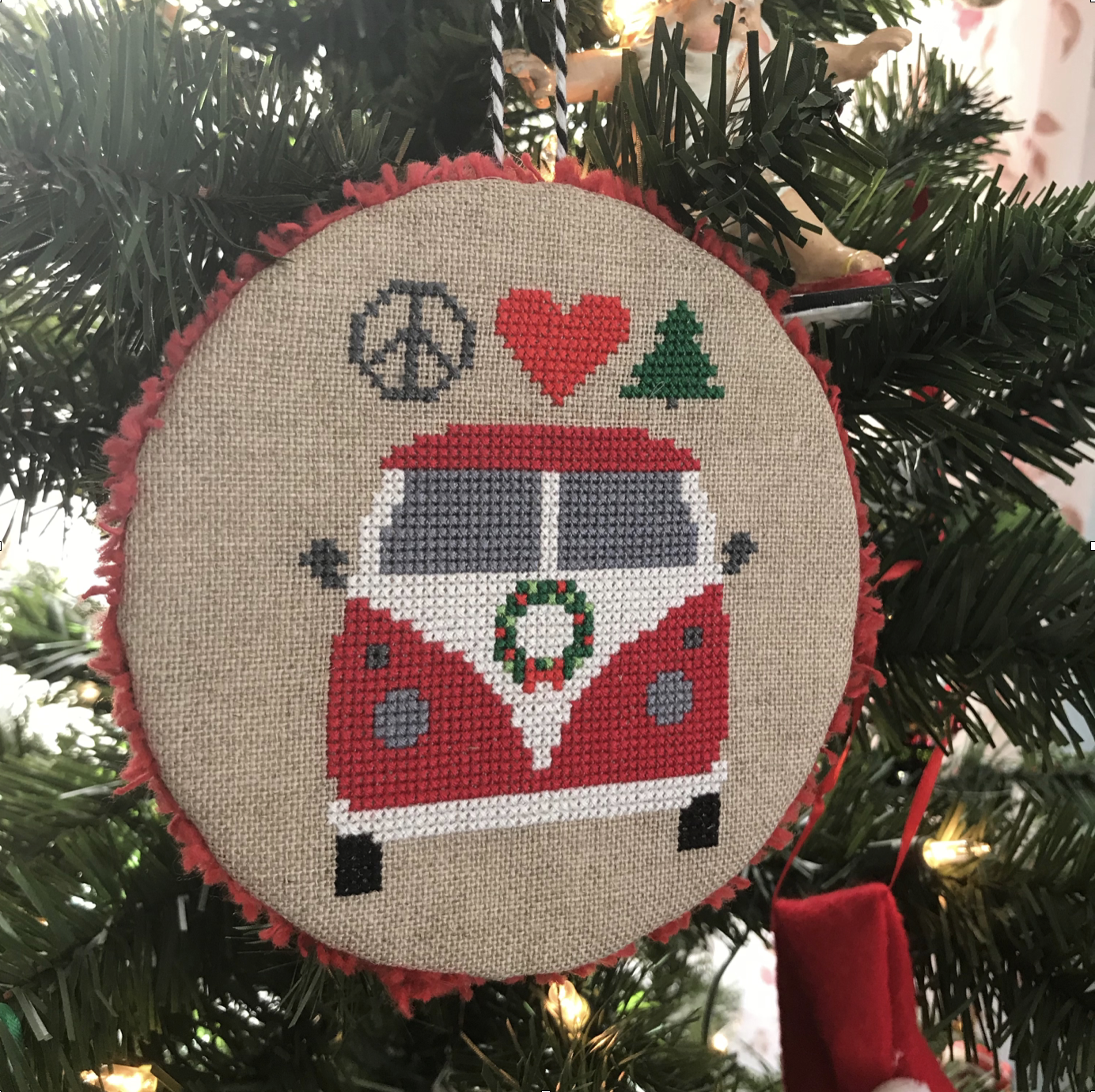 I am a cross stitcher and a cross stitch designer, and once upon a time, I designed this Christmas ornament for my etsy shop, and while I didn’t stitch the VW emblem on there, Volkswagon still holds copy-write over the shape of their vehicles. So, I can no longer sell it, but I can give it to you for free!!!!